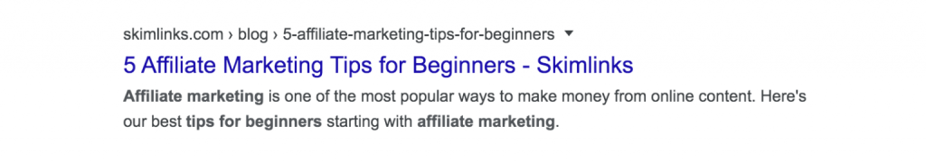 Notice how we used the keywords affiliate marketing and tips for beginners in our description? That’s just another way to help Google understand what your content is about, and why you should always write your own META descriptions because they can help you rank higher. They can also improve your Click-Through-Rate (CTR), so it’s a no-brainer.