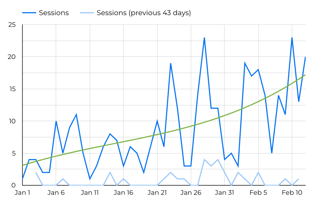 The report above was made using Google Analytics and Data Studio. It’s showing the number of the daily organic search traffic for one of our blogs. As you can see from the chart, it’s growing!