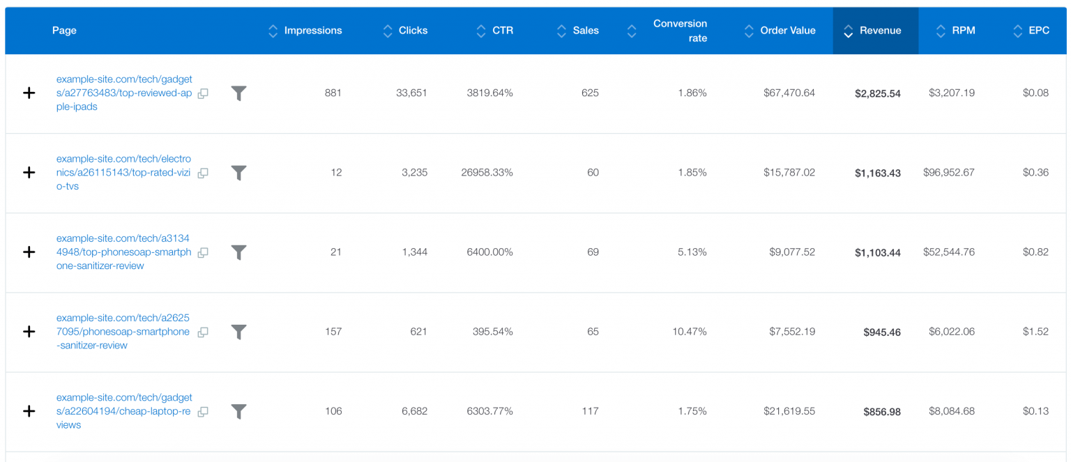 You can also use the Skimlinks page performance report to see which blog posts bring you the most impressions (traffic), and also the ones that make the most affiliate revenue. This will be useful to determine what type of content is performing well and doing more of what works.