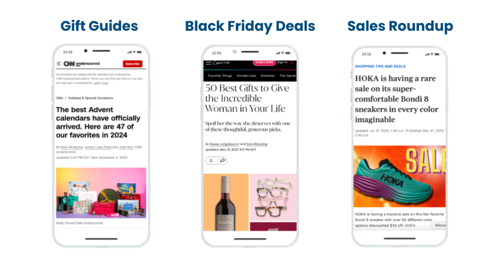 These publishers are busy — preparing gift guides, “best deals” posts and last‑minute roundup articles. So if you want to make sure your brand is featured, now’s the time to make it easy for them.