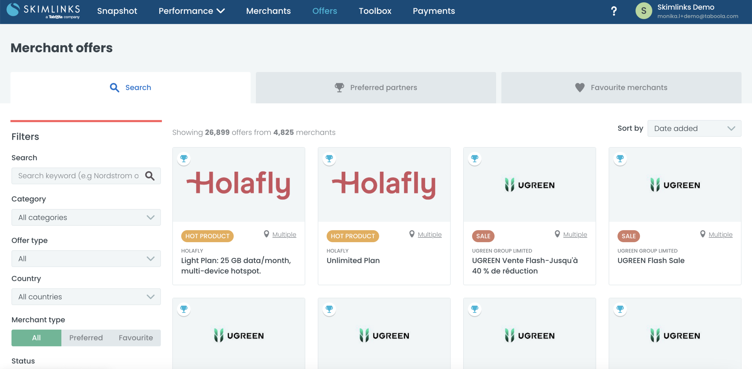 Help your audience identify the best deals with the newly-updated Offers Page in the Skimlinks Hub (now with 45% more merchant offers). You’ll find thousands of merchant sales, coupons, and free shipping offers – all in one place and ready to share instantly. It’s the fastest way to simplify holiday deal-hunting, and increase the chance of conversion through your affiliate links. Win-win!